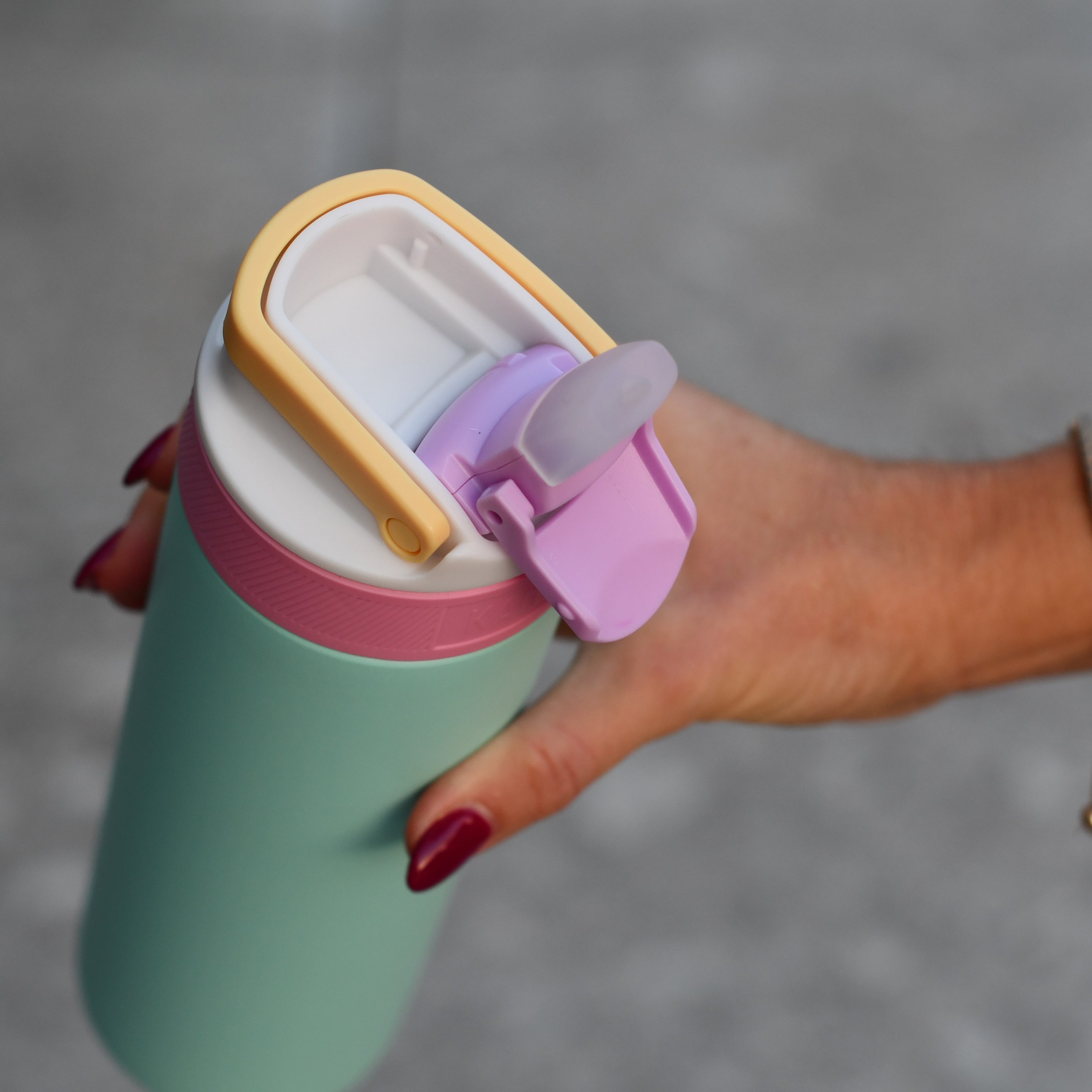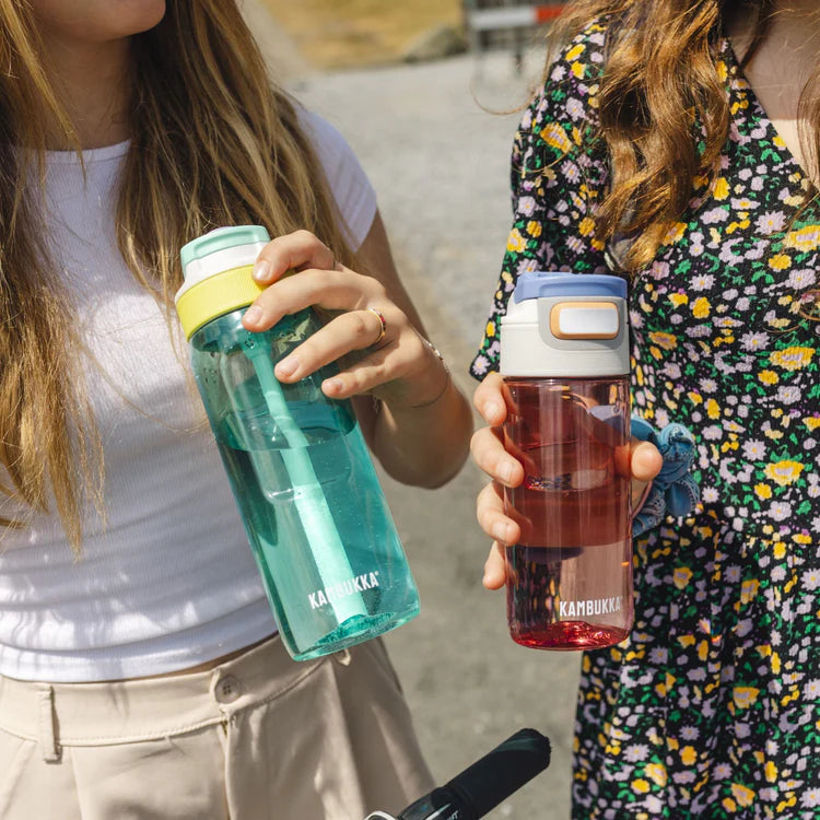 The Kambukka Lagoon bottle comes with a practical, leak-proof straw lid, perfect for easy drinking. It features a soft silicone spout for comfortable sipping and a spout cover to keep it clean and protected when not in use. Keep the spout cover closed to prevent the bottle from leaking.